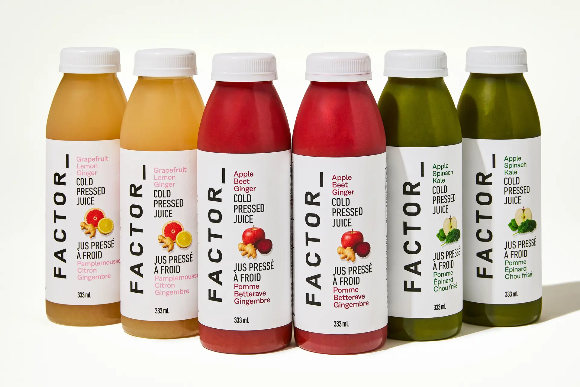 Cold-pressed beverages intended for quick refreshment.